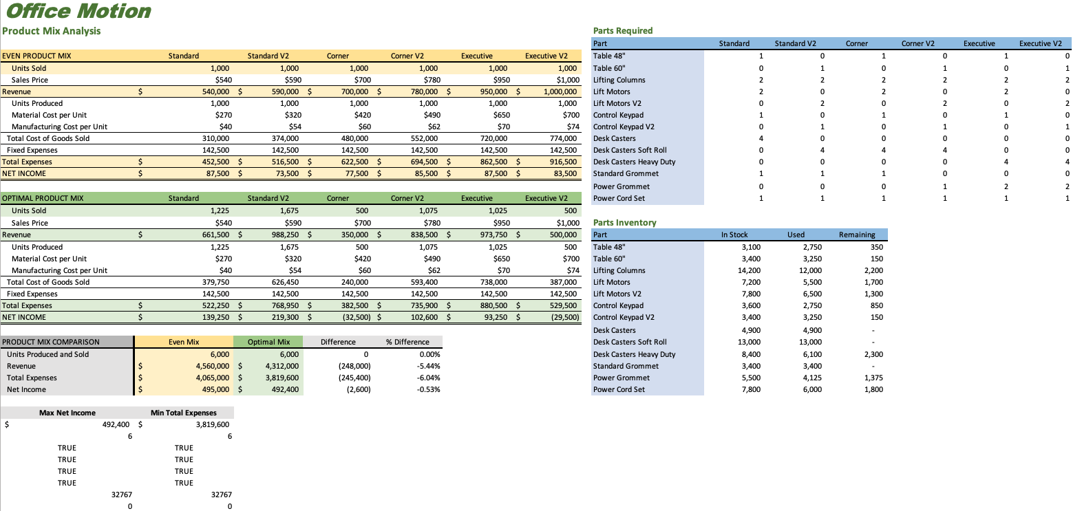 - Financial Modeling & Optimization (Break-even & Product Mix)
