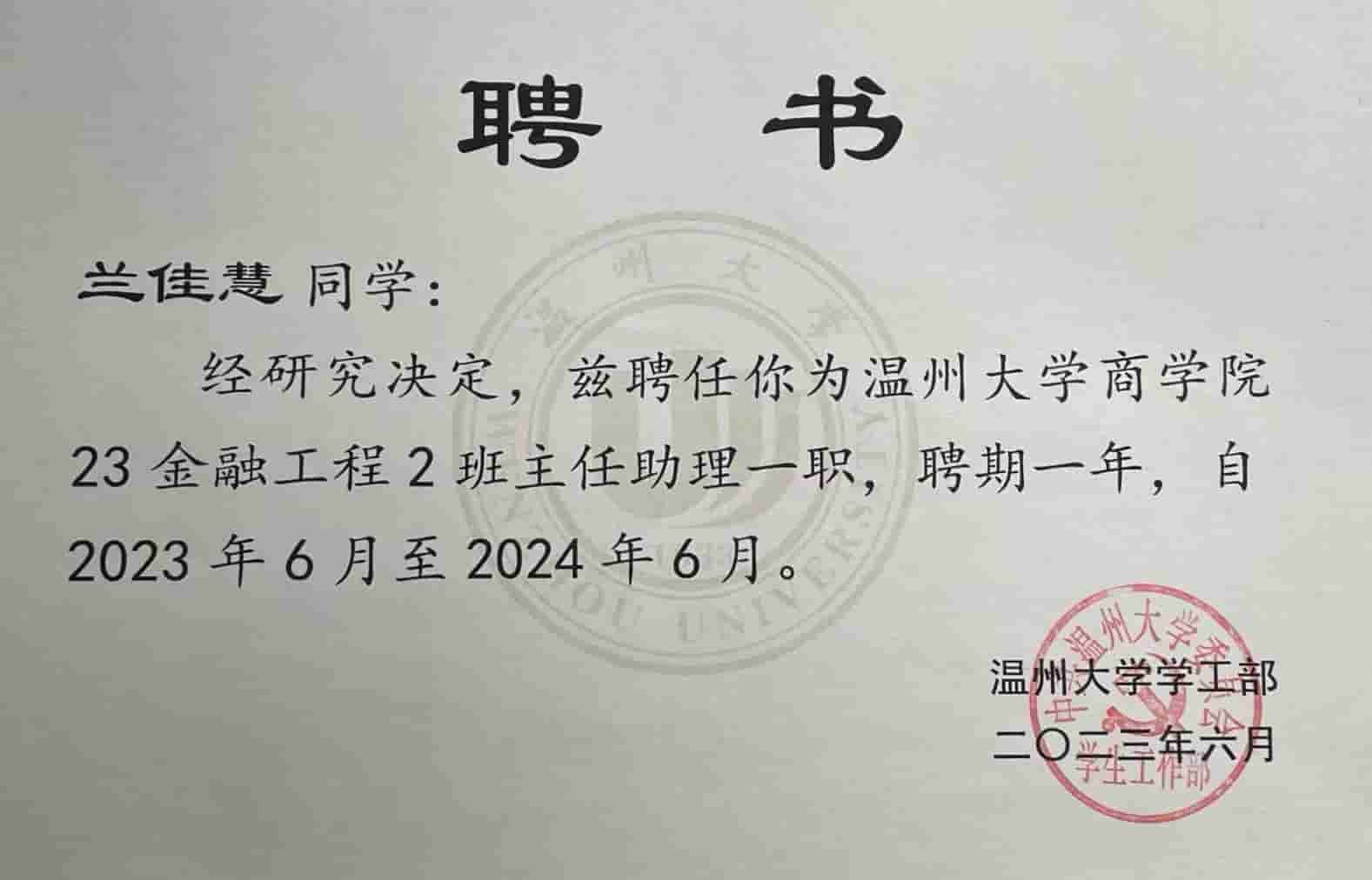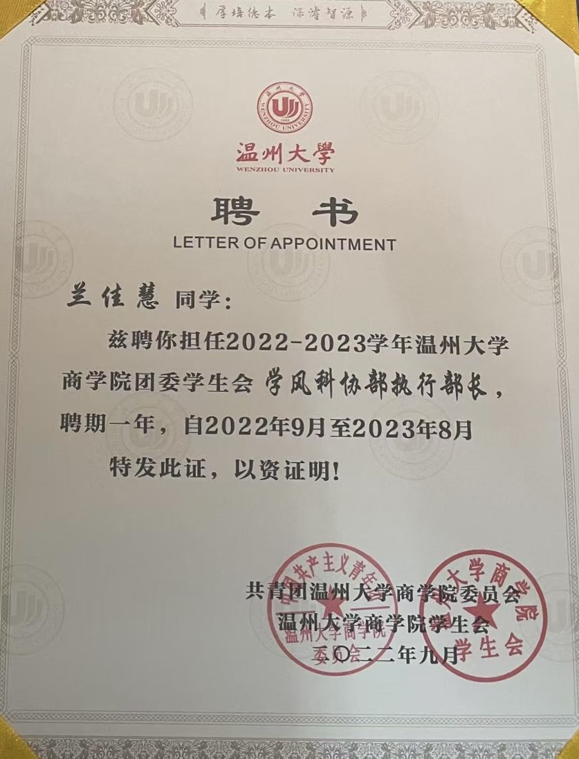 - "Internet+" Volunteer, Zhejiang Province | School Award Recipient
