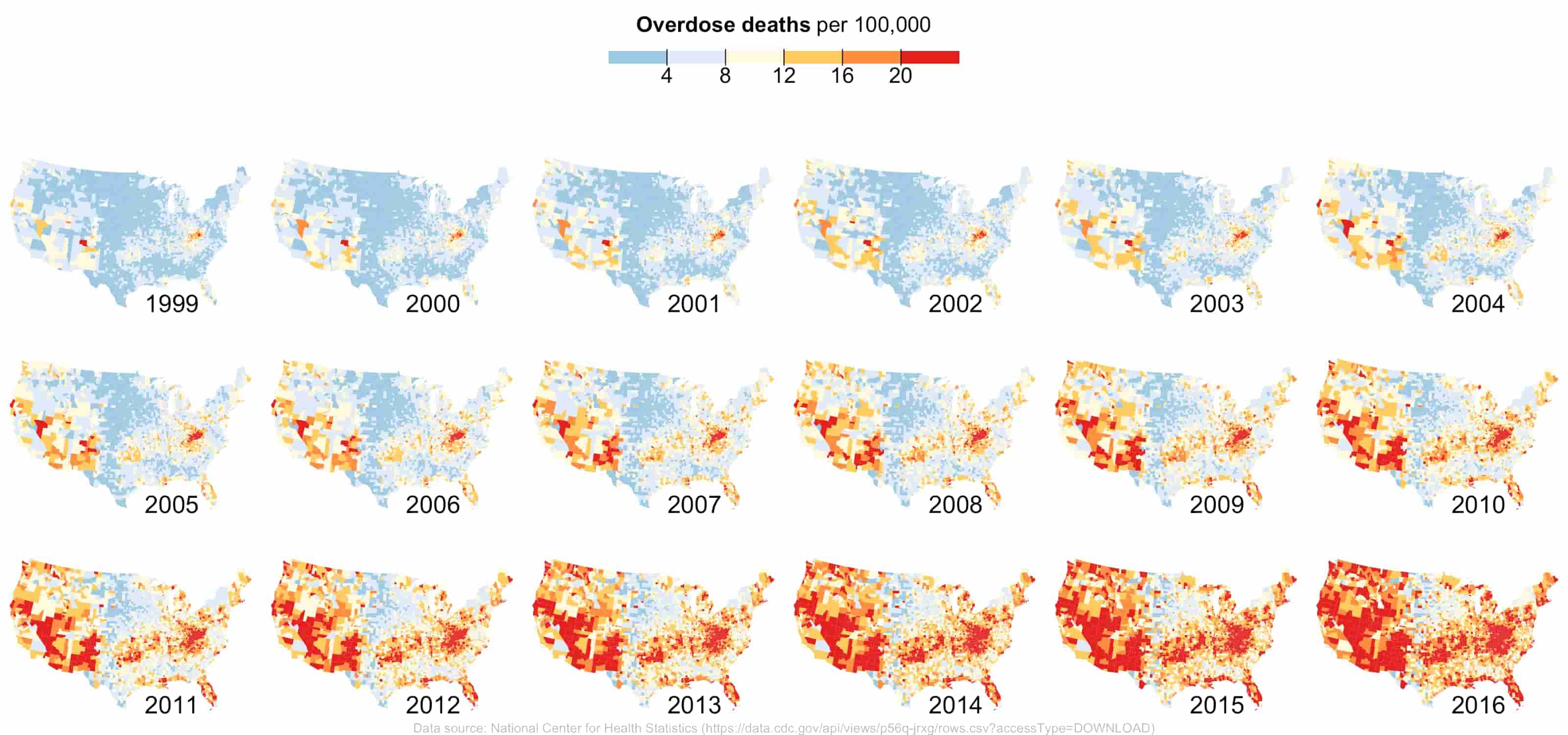 - Created NYT-style county-level overdose maps (multi-panel layout)